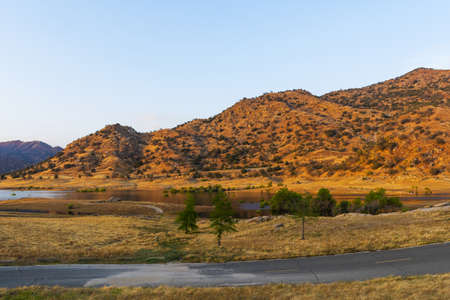 The lake Kaweah is water reservoir on Kaweah river beneath Sierra Nevada mountains, California, USA