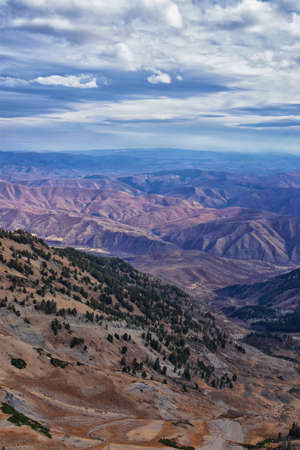 Provo Peak views from top mountain landscape scenes, by Provo, Slide Canyon, Slate Canyon and Rock Canyon, Wasatch Front Rocky Mountain Range, Utah. United States.
