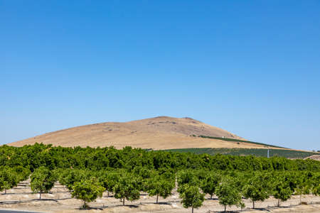 orange plantation in California with green trees