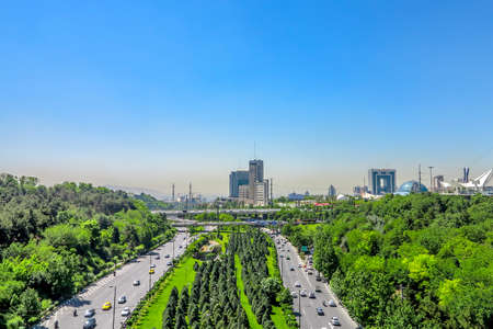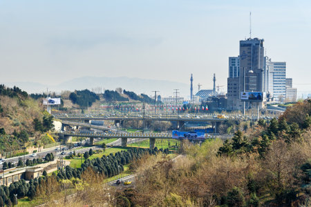 Tehran, Iran - March 19, 2018: View on Modares highway and Fajr bridge from Tabiat Bridge. Bridge complex on Modares highway in conjuction with Hemmat highway
