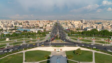 Tehran, Iran - May 2019: Tehran cityscape as seen from Azadi Tower in Azadi square