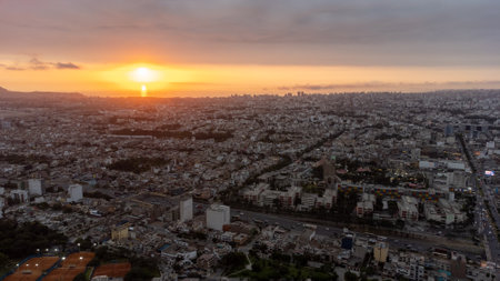 Panoramic night view of the Costa Verde trail at sunset, in San Miguel - Lima, Peru.