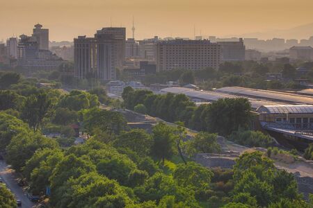 BEIJING, СHINA - JUNE 01, 2019: Beijing aerial view of famous landmarks from roof top.