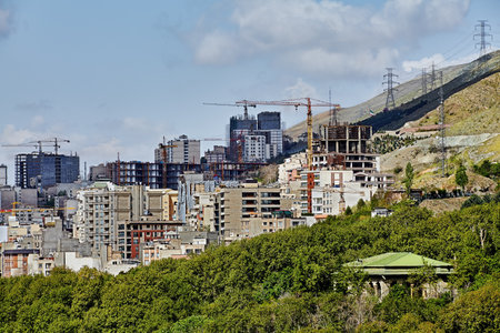 Tehran, Iran - April 28, 2017:view of multi-storey construction and tower cranes near the mountain.