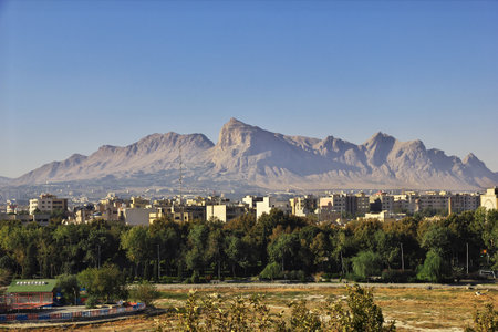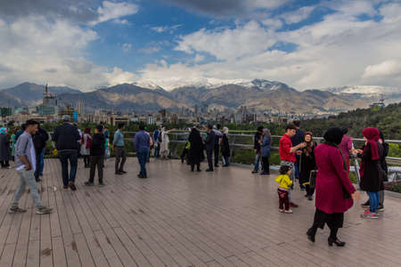 TEHRAN, IRAN - APRIL 14, 2018: View of Alborz mountain range from Tabiat pedestrian bridge in Tehran, Iran