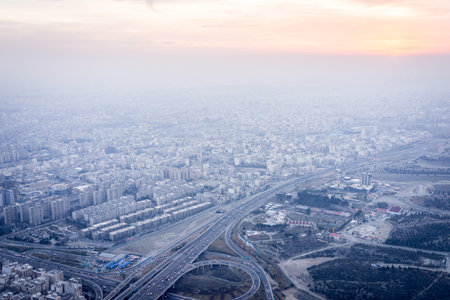Top view of Iranian capital Tehran. Megapolis with road junctions