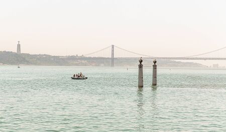 View of the river tejo from the monument of the Discoveries to the bridge 25 of april in lisbon, Portugal