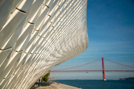 MAAT (Museum of Art, Architecture and Technology) and 25 de Abril Bridge in Lisbon (Portugal)
