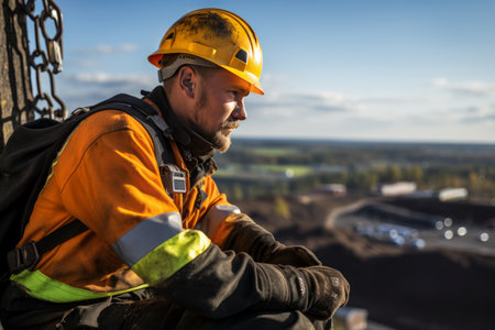 Ensuring Safety Measures: Construction Miner Supervisor Donning Safety Gloves Signs Working at Heigh
