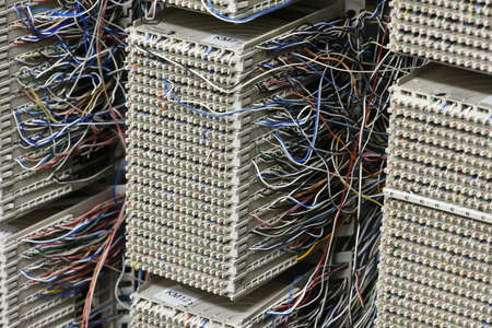 Telephone switchboard panel with wires