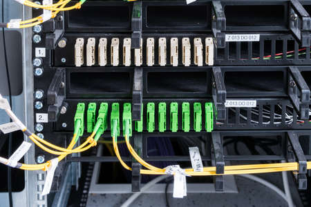 fiber optic with servers in a technology data center .