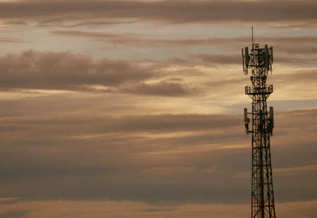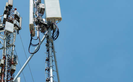 Cell site base station. Telecommunication tower. Wireless communication antenna transmitter.Digital wireless connection system.