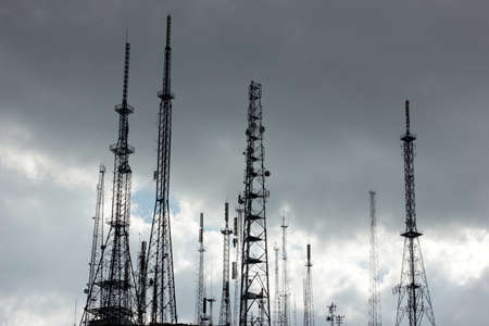 Telecommunication tower with copy space.Digital wireless connection system.Development of communication systems in urban areas.Modern Business Communication Concept.Antenna.