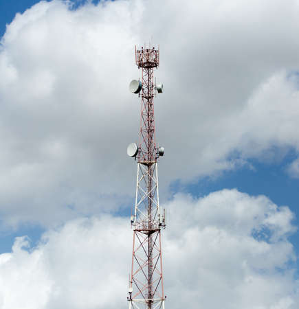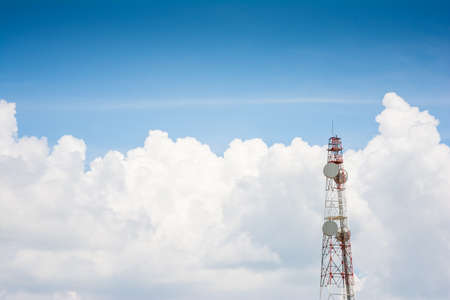 Telecommunication tower with blue sky and white clouds background,satellite pole communication technology.