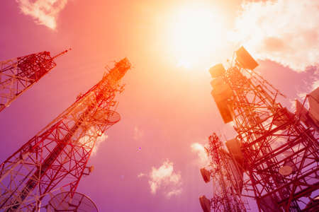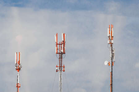 Cell phone towers against the background of the sky