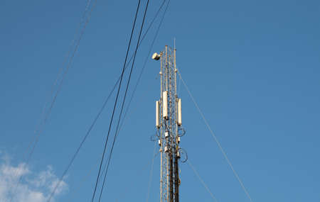 Mast of the cellular network over the blue sky