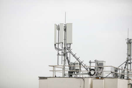 Telecommunication base stations on the roof of the building