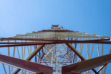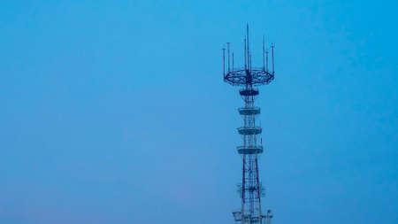 Telecommunication antenna tower, Radio antenna tower, Cellular antenna tower in blue sky background
