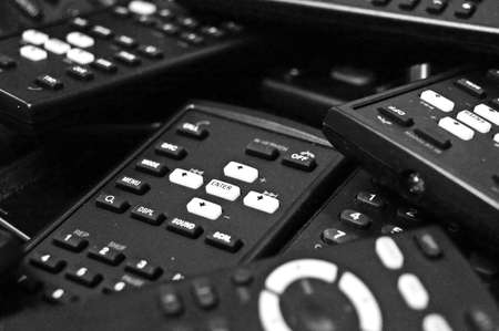 Air condition remote controller with buttons functionality in black and white closeup macro photo