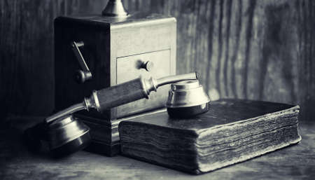 A vintage analytical instrument showcasing a paper cylinder in an authentic historical workshop setting. Perfect for themes of innovation and nostalgia.