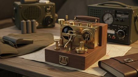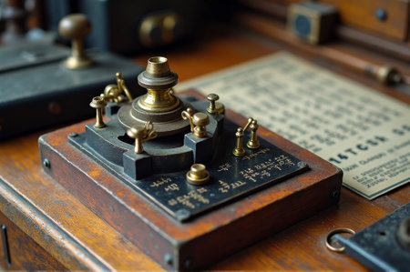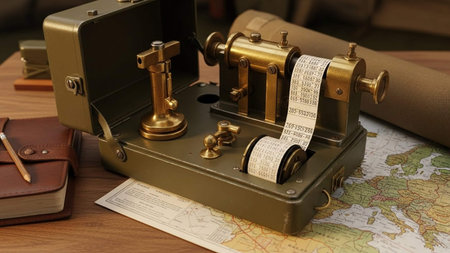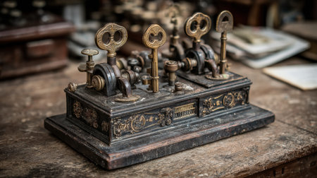 Vintage morse code telegraph machine in historic setting. That the image is generated using AI.