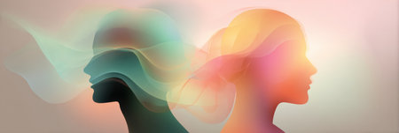 This artwork showcases two abstract profiles with gentle colors blending seamlessly, symbolizing the interplay of emotions and connections.