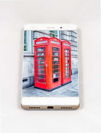 Modern smartphone with full screen picture of an iconic traditional british red phone booth in London, UK