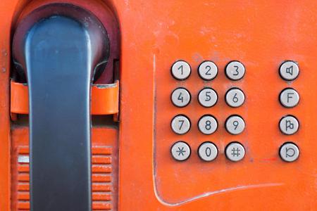 fragment or part of the old payphone of red color and with a push button set of number closeup