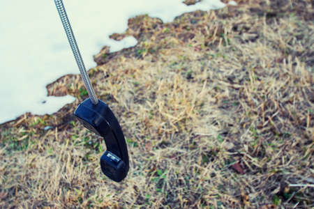 abandoned phone on the street. abandoned tube. The concept of separation, loneliness, relationships at a distance