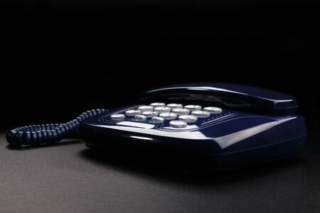 Outdated telephone with push buttons on black background