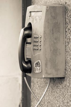 Close up shot of public telephones in monochrome
