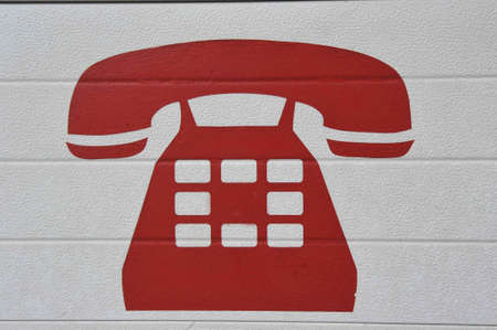 Landline telephone symbol, red, white background
