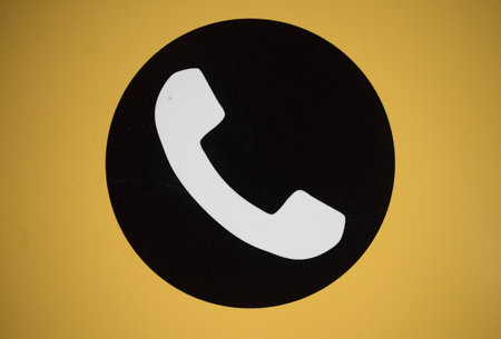 Yellow handset on red background.