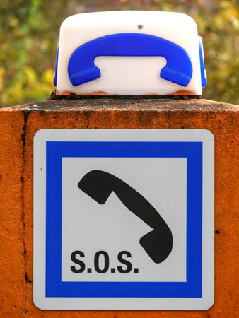 SOS sign composed of a telephone handset design and SOS letters