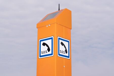 solar orange emergency call stand on the street of the city