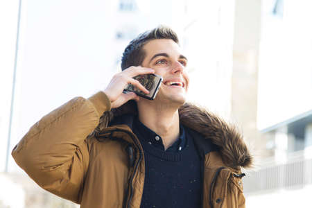 young man talking smart phone in street