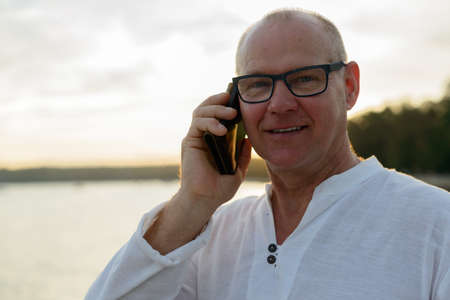 Happy man making phone call