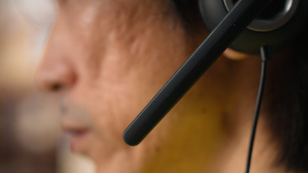 closeup shot of an unrecognisable man using a wireless headset, created with generative ai