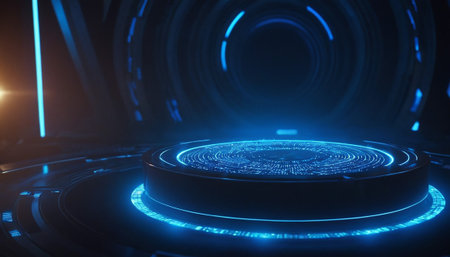 Abstract technology hud interface hologram elements neon lights, circle percent vitality innovation on hi tech future design. Generative AI