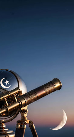 Telescope and a moon on the background of the night sky.