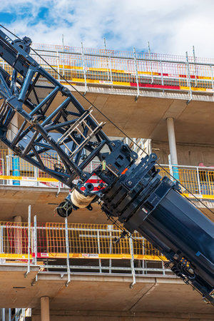 Vienna, Austria - 06.13.2022: Crane and construction site against blue sky