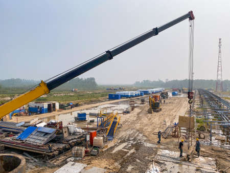 crane standing on a construction site under construction petrochemical plants