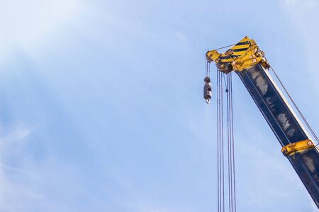 Mobile crane boom,Hook and sling of working out site heavy work industrial and blue sky background