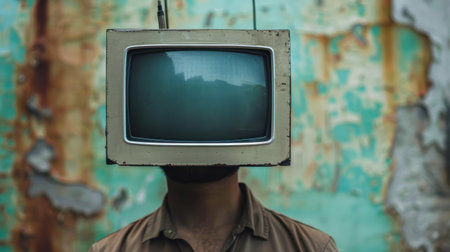 TV instead of a head. Propaganda concept. AI generated, human enhanced. Created with Generative AI technology