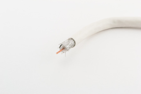Closeup of coaxial cables used for TV. Electrical cable with an inner conductor and an outer shield, used to carry high frequency electrical signals.