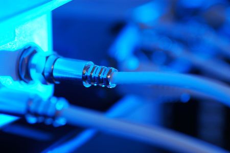 Macro of a coaxial cable female connection with a blue tone. Good concept photo for technology business.