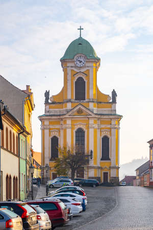 USTEK, CZECH REPUBLIC - OCTOBER 21, 2021: Saint Peter and Paul baroque church on Mirove Square in Ustek, Czech Republic