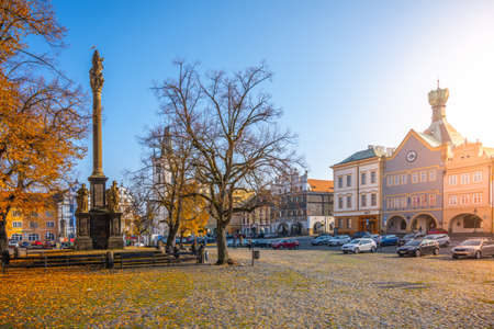 LITOMERICE, CZECH REPUBLIC - OCTOBER 28, 2021: Peace Square, Czech: Mirove namesti, in Litomerice on sunny autumn day. Czech Republic