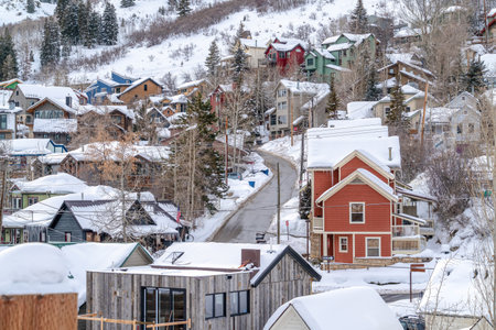 Sunny high angle view of the Ouray town at Colorado