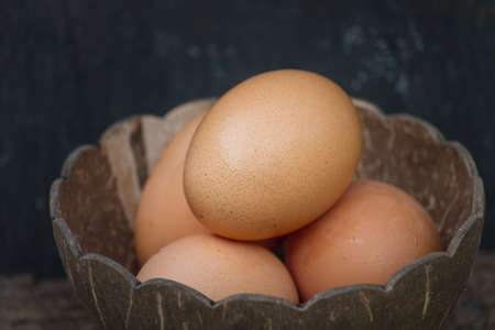 Fresh eggs on a wooden background,in Thailand